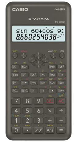A calculadora científica Casio FX-82MS da Casio é ideal para uso escolar, graças ao seu ecrã de duas linhas, design ergonómico e menu de navegação para cálculos estatísticos. 240 funções integradas, funções SCI/ENG/FIX, funções de trigonometria, cálculo de percentagens e S.-V.P.A.M. (* Super Visual Perfect Algebraic Method).